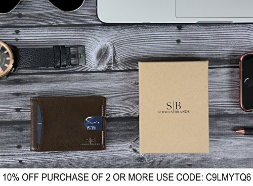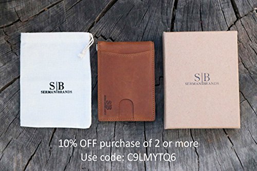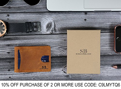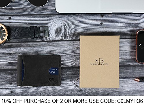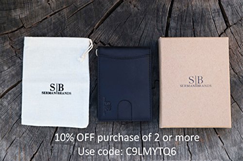 Binding : Apparel Product Description SERMAN BRANDS Genuine Leather Wallets RFID Blocking - Theft Proof Wallet- Protect Your Identity The Secret to Keeping Your Data Safe! Identity Theft is at All Time High! Unless properly shielded, your card-based data is readily available when any active reader is in range! The Best Way to Protect Your Smart Cards from unwanted capture of data from contact less cards issued by banks, governments and other institutions such as: ? Credit or Debit (for example: MC PayPass, VISA PayWave, AMEX expresspay, INTERAC Flash, etc.) ? Enhanced driver's license, Hunting and fishing license ? Access / security control, Employee / School ID ? Health insurance, Medical ID ? Gift, Membership, Library ? Transit / Park pass Protects against access by NFC-equipped Smartphones Some recent smartphones are equipped with NFC technology which can also read the data on your Cards easily SERMAN BRANDS is a team of free thinkers with varied disciplines from design, engineering, marketing and finance. Together, they share their diverse strengths and united passion of creation to bring to you NEW life-easing everyday must haves. "We love all things beautiful, functional and well crafted. Today there's a growing community of people who appreciate and hunt for this union of solid functionality, minimalist style combined with great craftsmanship made from honest materials. We believe that these are the core value of our creations and customers. 0 |