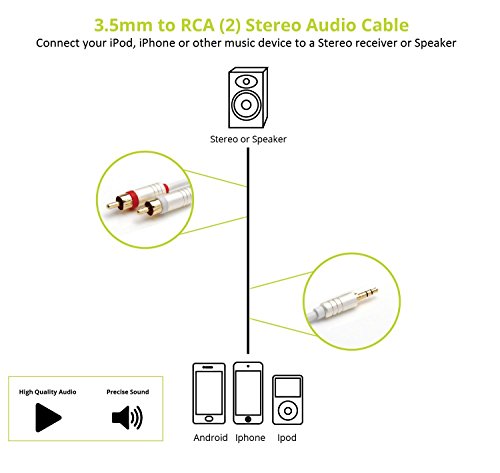 Technical Specifications- Connector Type: 3.5mm Male to 2 RCA Stereo Audio