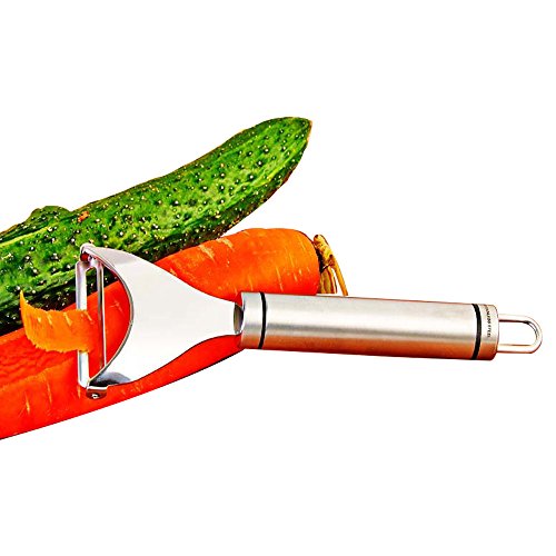 - stainless steel handle mounted to a smooth polished Y-style peeler