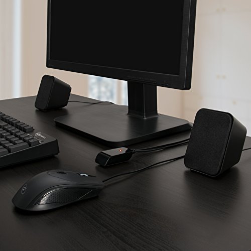 Built-in Satellite Controls for Easy Access: Easy access volume, power and a headphone jack for private listening. The 2.1 speaker system has balanced speakers and integrated sound cavity output to reduce vibration and echo.