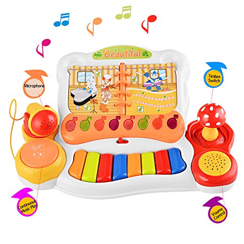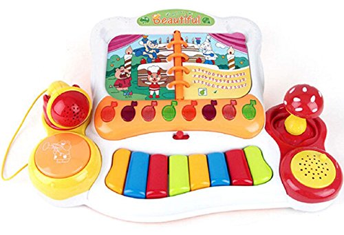 100% Brand New,Material: ABS,Color: Colorful,Size: Approx 35*27*9cm,Package size: 38*28*10cm Keyboard: 8 buttons,Light: 8 pieces twinkling lights,Timbre switch: Mushroom design,Music page switch: 4 pages Battery: 3 x AA 1.5V Batteries (Not included),Suitable: For children 3 years old and up Eight songs,Twinkling lights,Microphone function,Multi-functional music platform,Multiple melodies for choice. Warning: Choking hazard small parts, not for children under 3 years. Note: Due to the difference between different monitors, the picture may not reflect the actual color of the item. We guarantee the style is the same as shown in the pictures. Thank you! Package Content: 1 x Play Piano