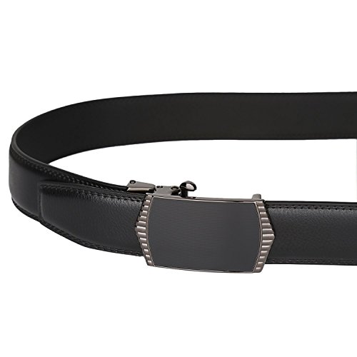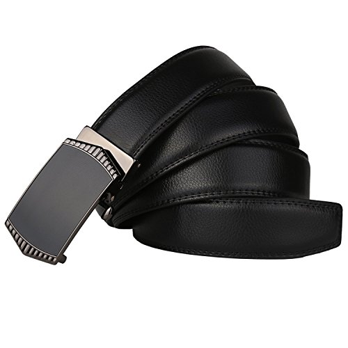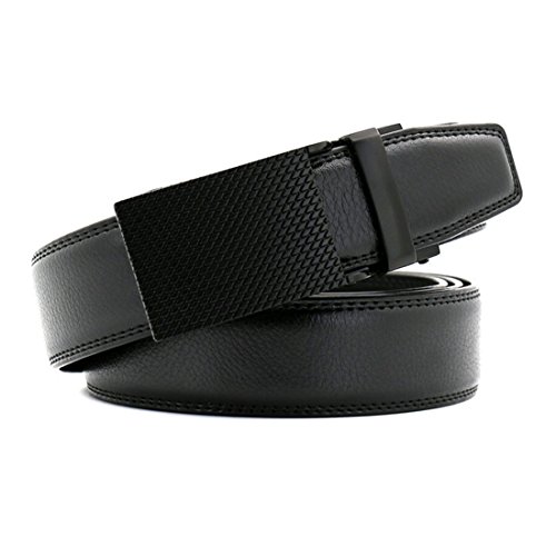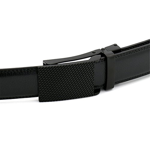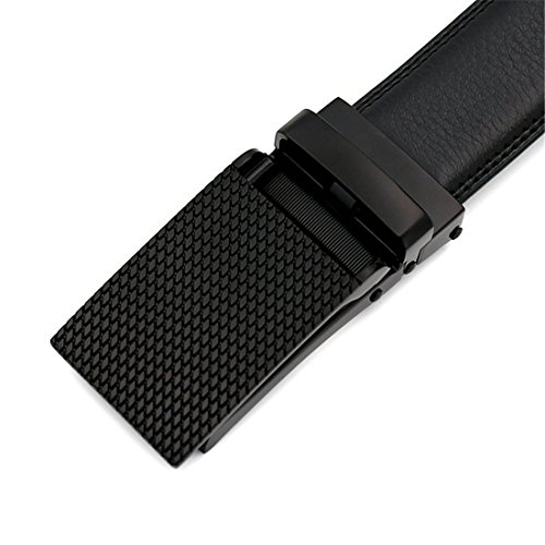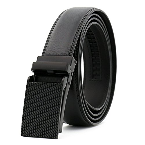 Belt Features: (a)The belt is sleek and clean, and provides a perfect fit for everyone. (b)plz buy one size larger than your waist,oversize for special demand (c)The tip of the belt inserts into the ratchet belt buckle, where a locking mechanism holds the belt in place from the back. (d)To remove the belt, just press the small metal lever on the bottom of the buckle, and the belt slides out of the buckle.