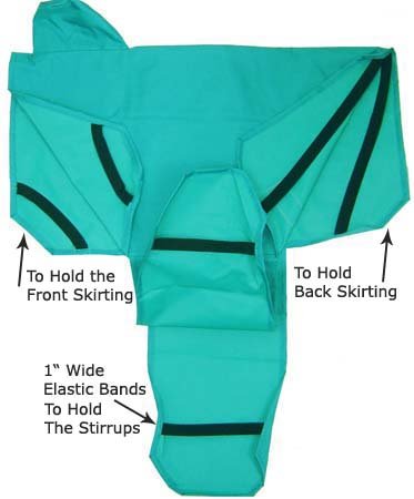 Product DescriptionThis saddle cover keeps your western saddle free from dust and scratches! Waterproof nylon with 1" wide 6 elastic straps to hold skirts and fenders. Great for protecting and transporting your equipment!0