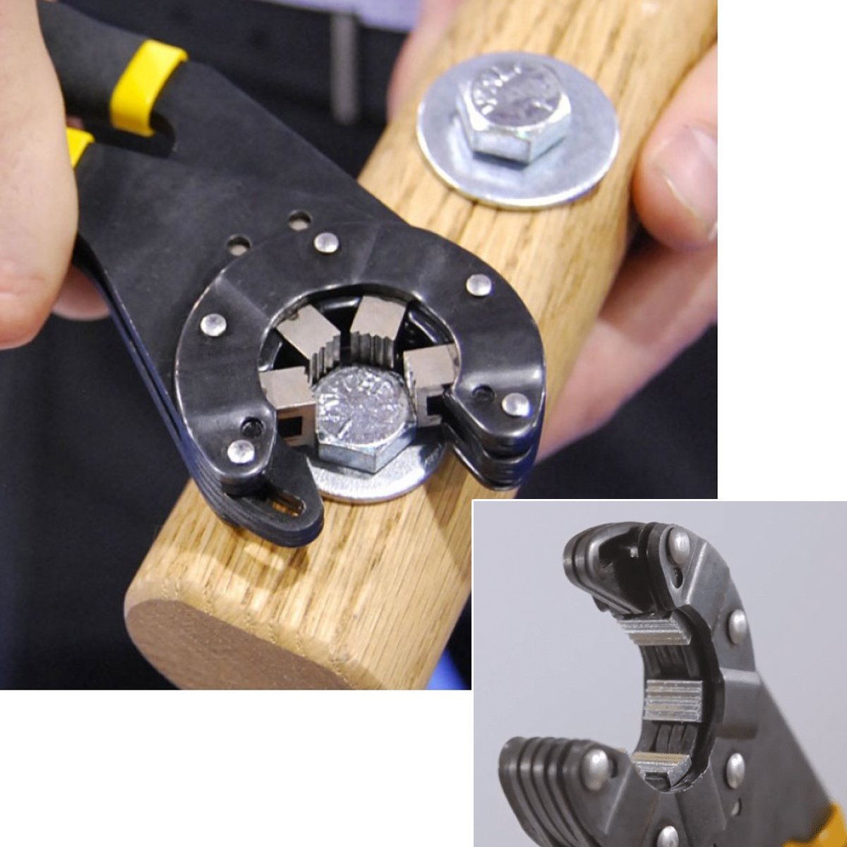 It is structured to grip the pipes and bolts firmly.