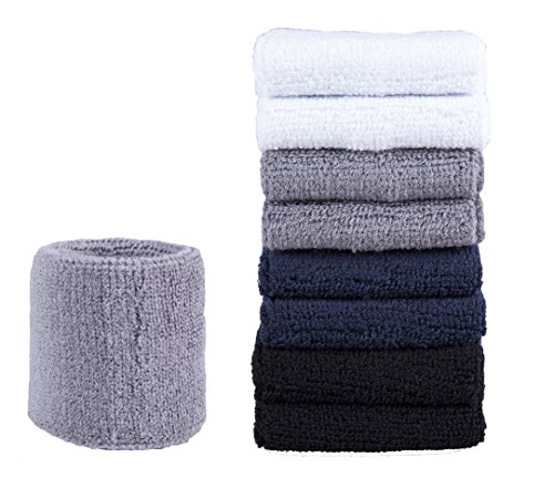 -. Feature : 4 Pairs of Sweat band in one package with reasonable P.R.Ice. / Approximately 4" x 3 1/2" , fit most men and women. / Ultra Comfy and Durable! 80% Cotton, 12% Spandex and 8% Nylon / Absorbs Sweat with very comfortable material. / Great for All Athletes - basketball, baseball, runners, tennis & more!