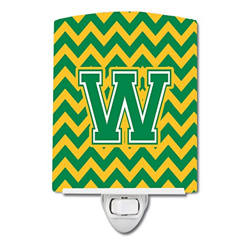 Caroline's Treasures Letter W Chevron Green and Gold Ceramic Night Light, 6 x 4", Multicolor
