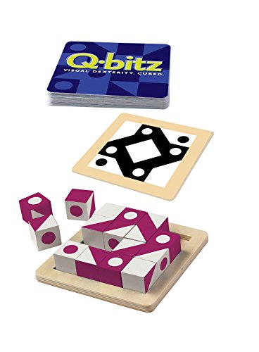 -. Feature : VISUAL DEXTERITY CUBED: Q-bitz will challenge your visual agility, memory, pattern identifications and hand eye coordination. Recreate the displayed shape in the allotted time frame, or suffer defeat. Are you fast enough? / VARYING LEVELS OF CHALLENGE: Through the course of 3 lightning-fast rounds varying with 3 levels of difficulty, you will be required to use your full arsenal of brain power. Be it quick processing, a sharp memory, or just a lucky break, you'll need everything at your disposal to complete each round. / GAMES THAT TEACH: Q-bitz is playable from early ages up, allowing young children and older individuals alike to develop and hone their spacial recognition and organizational skills. Win and learn simultaneously! / INDIVIDUAL OR ADD-ON SET: Q-bitz is a fantastic game for individuals and groups alike. Either play by yourself in a tense race against time or add this to a set you already have and try to land the best time in groups as large as 6 when all additional options are purchased. / INCLUDES: Package includes 20 new Q-bitz cards (not found in original set), 1 wooden tray, and 16 challenge cubes. Please note: Product includes small pieces. Not for children under 3 years old.