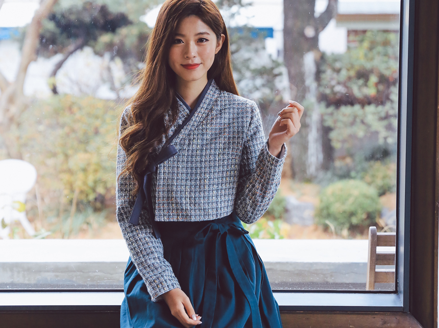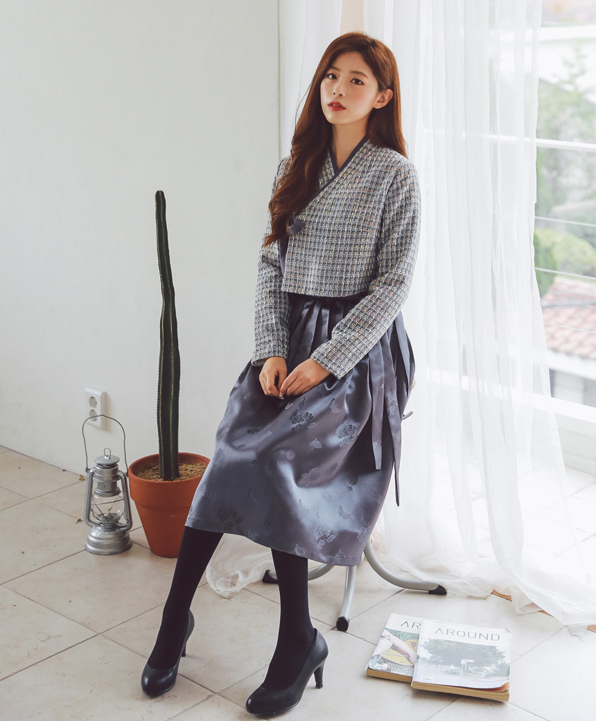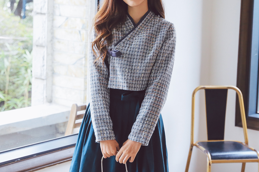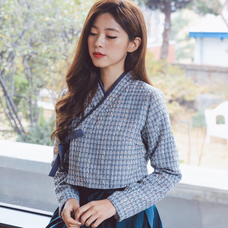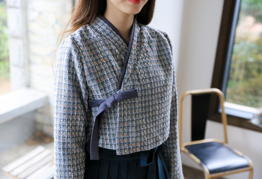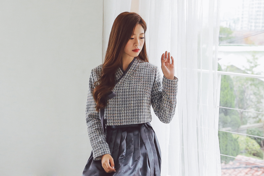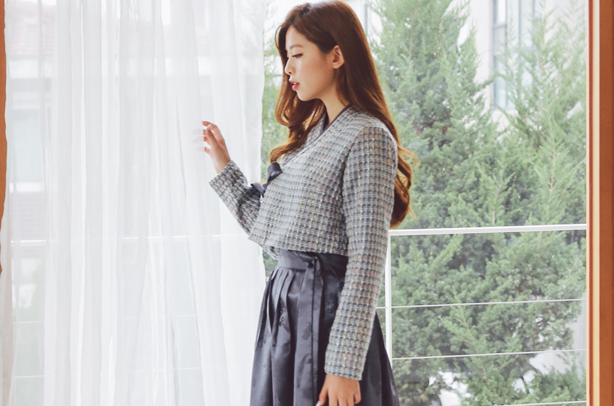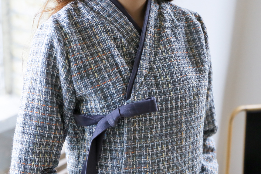 고급 스웨이드 원단의 그레이컬러를 깃과 고름에 포인트로 주어 밝은 피부톤의 고객님들, 어두운 피부톤의 고객님들 모두에게 화사하고 세련된 느낌을 준답니다.