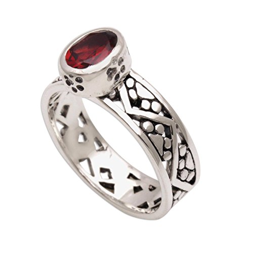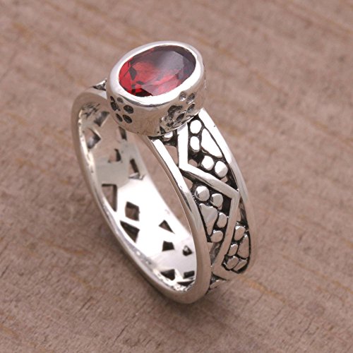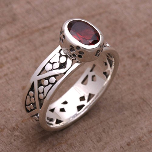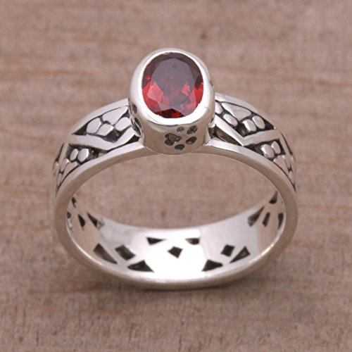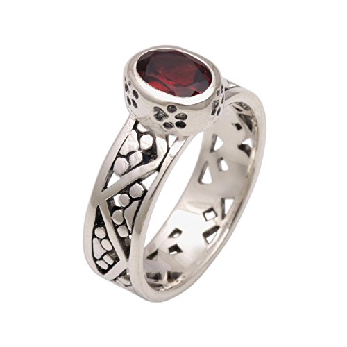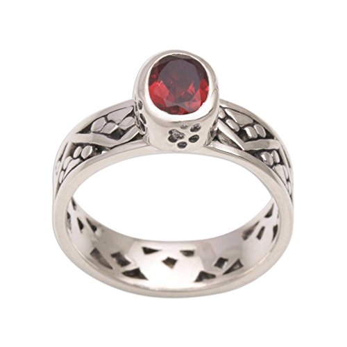 About this item: Inspired by her passion for helping animals, Bali's Janice Girardi designs this loving single stone ring. Its band is crafted from sterling silver to feature cute paw print motifs within triangular shapes. The bezel is set with an oval stone of natural garnet and accented with oxidized paw prints.