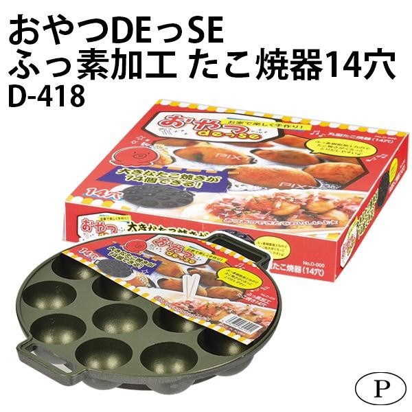 ふっ素加工でお手入れ簡単なたこ焼き器。一度に14個焼けます。 製造国:韓国 素材・材質:アルミニウム合金(内面:ふっ素樹脂加工) 商品サイズ:(約)幅23.7×奥行20.8×高さ3cm 仕様:ガス火専用※IHには対応しておりません。 ※サプライヤー直送品 ご注文後3~4営業日後の出荷となります【商品名】パール金属 おやつDEっSE ふっ素加工たこ焼器14穴 D-418