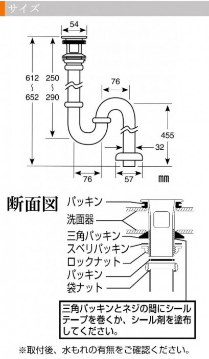 ※排水管の接続は必ずシールをして下さい。漏水で家財などをぬらす財産損害発生の恐れがあります。