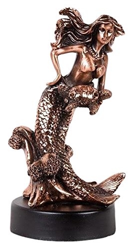 StealStreet SS-BA-C8321 Copper Mermaid Swimming with Turtle & Waves Decorative Statue, 7"