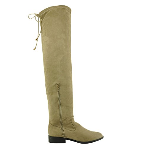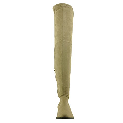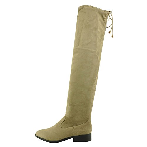 Binding : Apparel Product Description Qupid Vinci 47 Women's Casual Over The Knee Stretch Boots. Heel Height: 1 inch, Shaft Height: 23½ inch, Width: Medium (B, M), Style: Boots. Featuring: 100% vegan friendly, stretch faux suede upper, Elastic topline lacing for security. Feminine rounded toe , Soft fabric lining, Sturdy, low rubber heel, Partial inner zipper. Show off your inner fashionista in this season's on trend, over-the-knee, stretch boot called the Vinci 47 by Qupid. 0