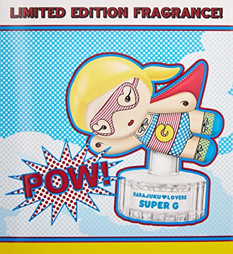 -. Binding : Health and Beauty -. Brand : Gwen Stefani -. EAN : 0885727679735 -. Feature : Super G joins the cute Harajuku Girls perfume collection by Gwen Stefani. / G represents Gwen, this time dressed as a super heroine. / Super G is designed as sparkly and flirtatious cocktail of floral and fruity notes. / Juicy and exotic yellow pineapple opens the composition together with citrus splash of tangerine. / The heart features yellow freesia enriched with banana juice. -. HazardousMaterialType : Unknown -. IsAdultProduct : 0 -. Label : Gwen Stefani -. Manufacturer : Gwen Stefani -. Model : GWEGSUF0003002 -. MPN : GWEGSUF0003002 -. NumberOfItems : 1 -. PackageQuantity : 1 -. PartNumber : GWEGSUF0003002 -. ProductGroup : Beauty -. ProductTypeName : BEAUTY -. PublicationDate : 2012-11-19 -. Publisher : Gwen Stefani -. ReleaseDate : 2015-07-16 -. Size : 1 fl oz / 30 ML -. Studio : Gwen Stefani -. Title : Gwen Stefani Harajuku Lovers Super G Eau De Toilette Spray Limited Edition for Women, 1 Ounce -. UPC : 885575942180