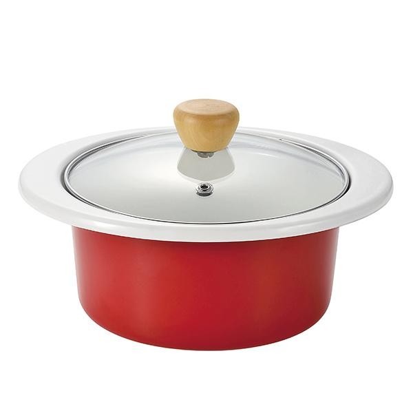 ホーロー製の鍋ですので、酸・アルカリに強く、腐食しにくいので衛生的で長持ち。表面はガラス質だから洗いやすくて清潔です。ガラス製の蓋も付いています。 |