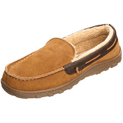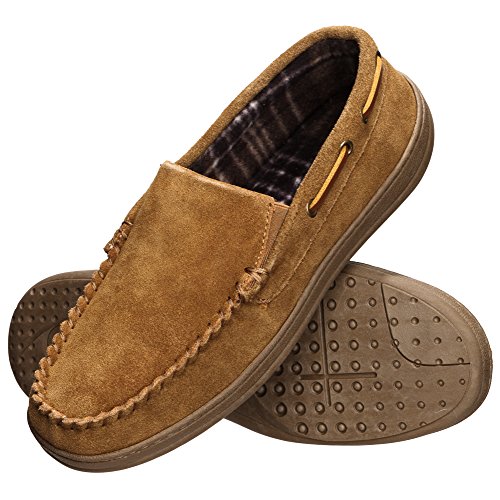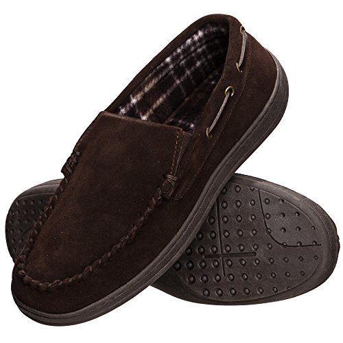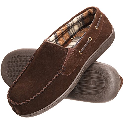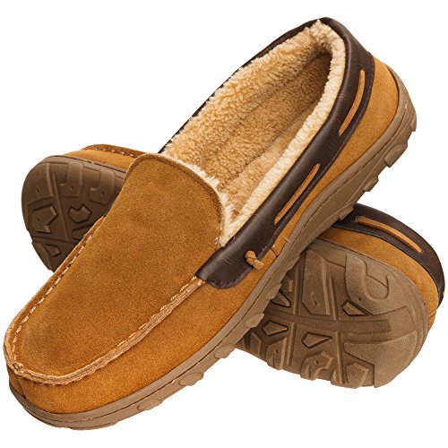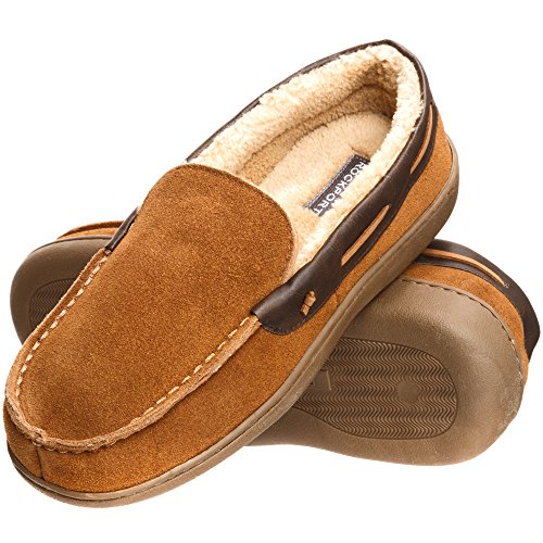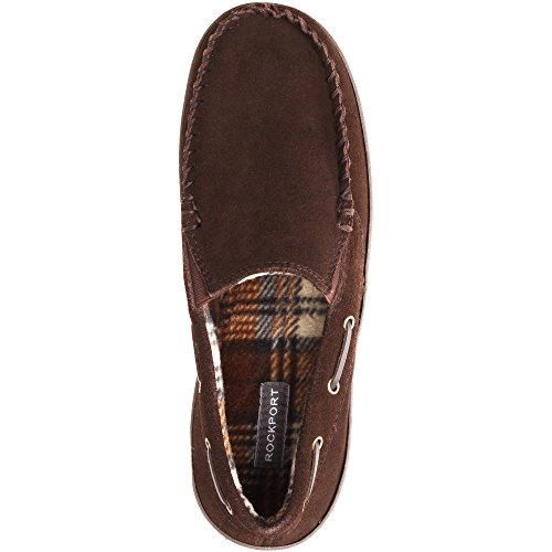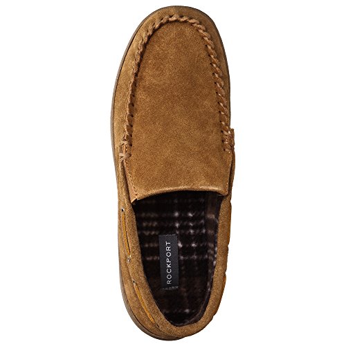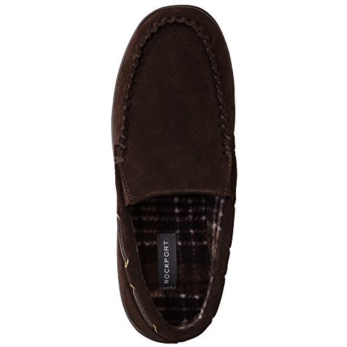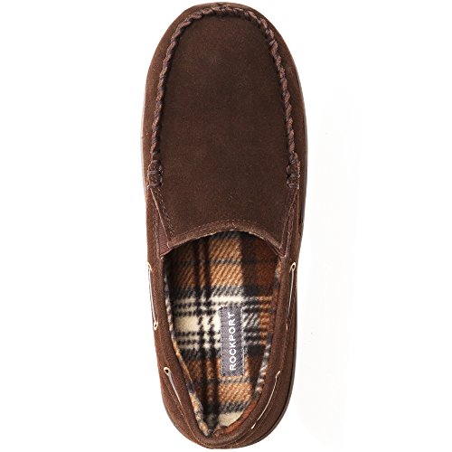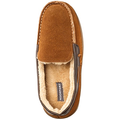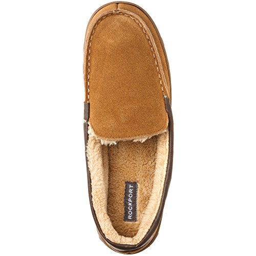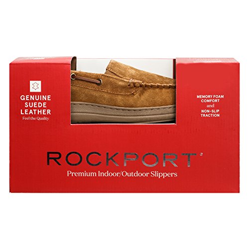 Binding : Apparel Product Description Pamper your feet with our Rockport Memory Foam Plush Lined Suede Slip-On Venetian Moccasin Men's Slippers. These slippers feature a durable, slip resistant rubber sole great for indoor and outdoor use. The plush lining will keep your feet cozy and warm. The memory foam cushioning allows the slipper to mold to the shape of your foot creating the most comfortable custom fit. This Rockport footwear style will provide you with all the comfort, flexibility and support you need in a slipper. These moccasins serve as the perfect Father's Day present, birthday gift, or just a little something for yourself! What can be better than giving the gift of ultimate comfort? But not only is this slipper comfortable, you can wear it anywhere! Taking the dog for a walk, taking the garbage out, running outside to get the mail, or use indoors when lounging around. Material: Body - 100% Genuine Leather Outsole - TPR Lining - 100% Polyester Two-Tone Plush Content 0