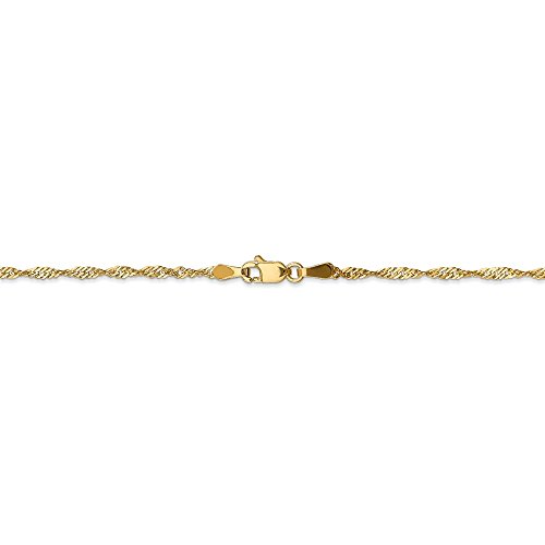 Solid 14k Yellow Gold Anklet Singapore 10" - with Secure Lobster Lock Clasp (1.6mm)