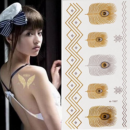 -. Title : Refaxi Gold Silver Metallic Temporary Tattoos Sticker Creative Body Art Tattoo WWS