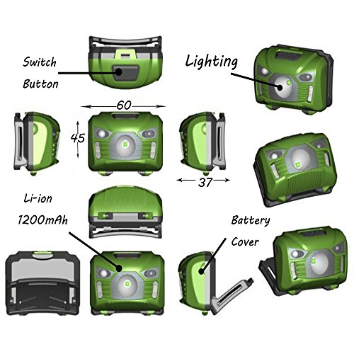 Three trees Head torchlight Sensor Brightest LED -With Red Light Rechargeable outdoor Headlamp Flashlight for Kids Men and Women ,Waterproof for Running, Walking ,Reading,Camping in 200 Lumens