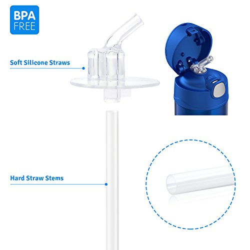 2 PCS Thermos Replacement Straws with Stems for Thermos Funtainer 12 Ounce Bottle F401 Silicone Drinking Straws Set with 2 Cleaning Brushes