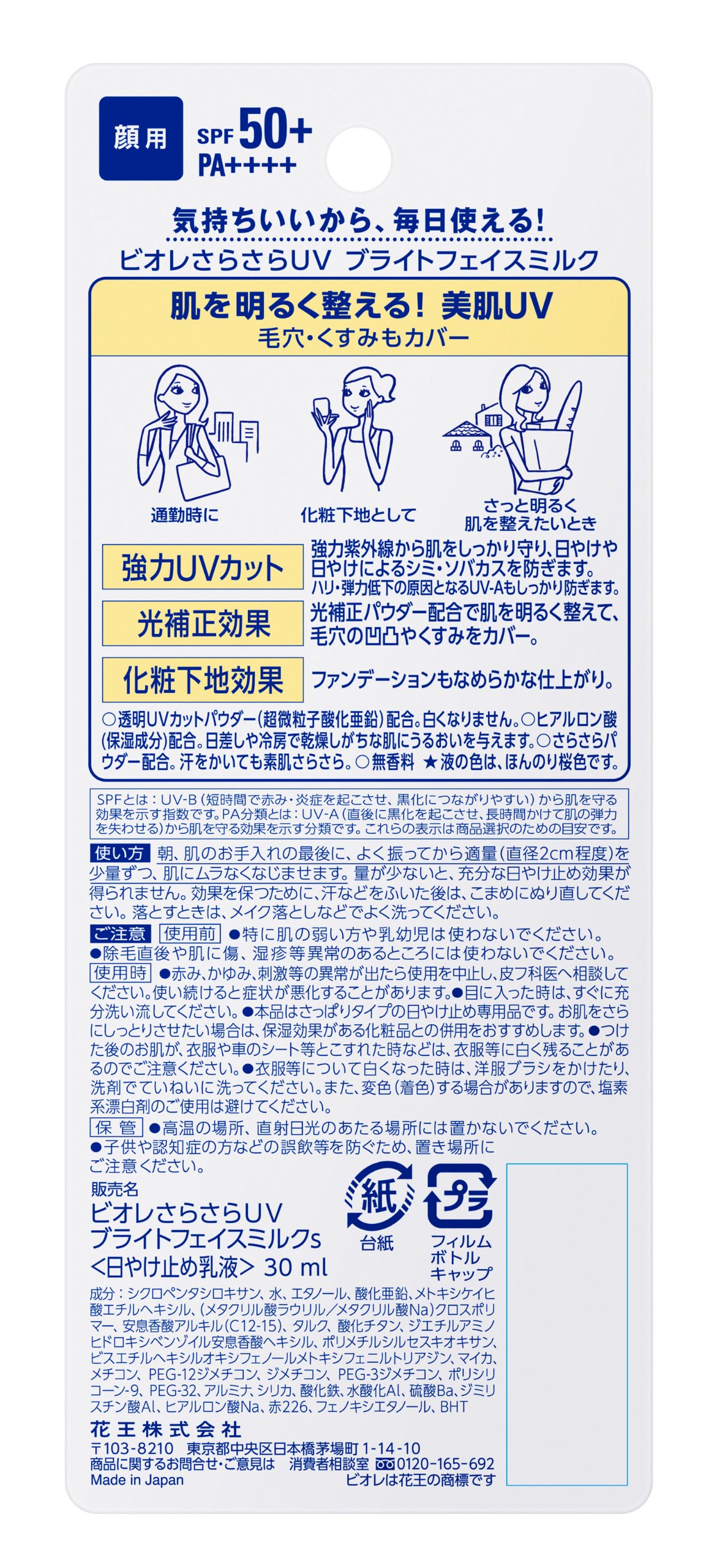Biore SARASARA UV Bright Face Milk BIHADA Sunscreen 30ml SPF50+ PA++++ for Face