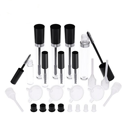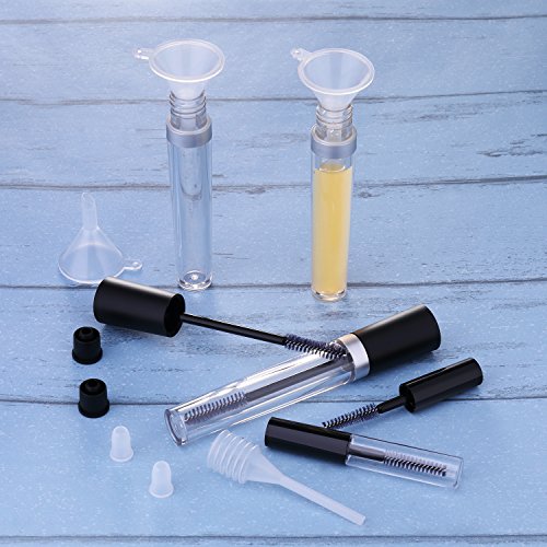 - EYELASH BRUSH BOTTLE SET: Package includes 8 pack empty mascara tube with brush, 8 pack rubber inserts and 4 pack plastic funnels, 4 pack transfer pipettes