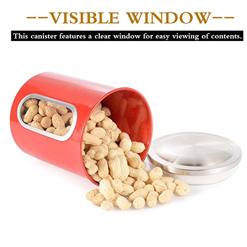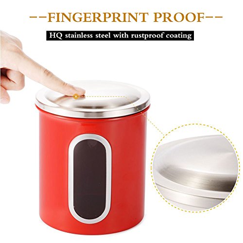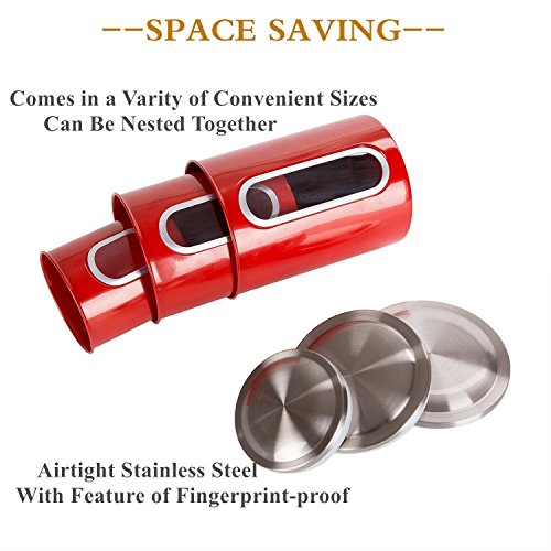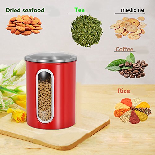 Clear Visual Windows -- Elegant red food canister set with a clear window for easy view of contents. Food grade material,have very good effect in moisture proof ,super sealing performance.