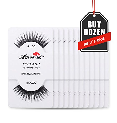 Amorus 12 Pairs Multipack #138 False Eyelashes Dozen Set 100% Natural Hair Black Handmade Comfortable Reusable Fake Lashes Pack