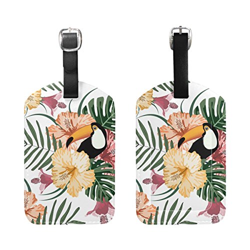 (YZGO)/Accessories/Luggage, Bags Travel/DIRECT FROM USA/YZGO Colorful Flowers Leaves N Toucan PU Leather Luggage Tags Bag Label Tag Travel Accessories ...