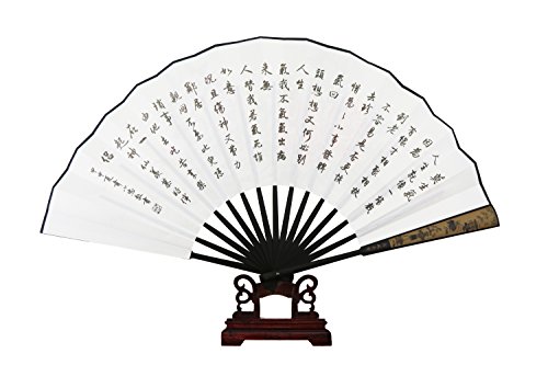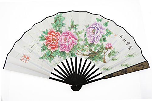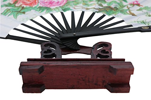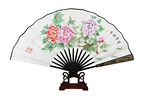 Decorative Chinese Cultural Hand Fan with Display Stand Holder by SweetDays (Peony)