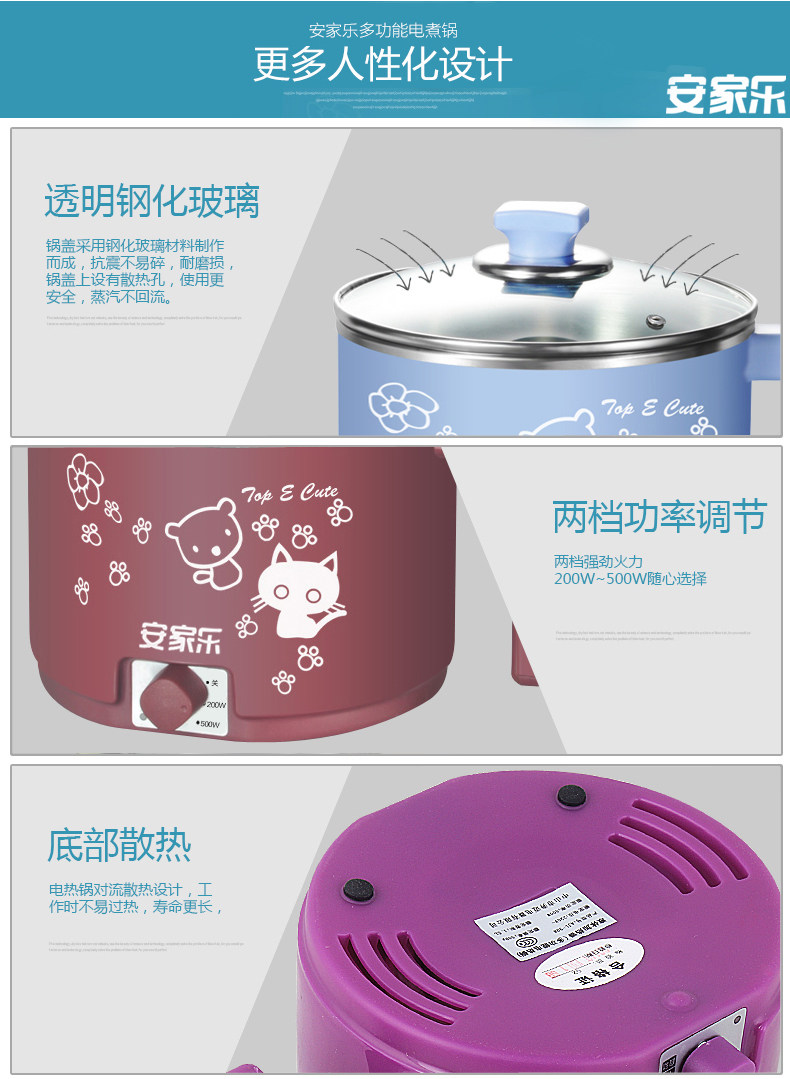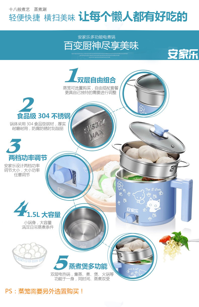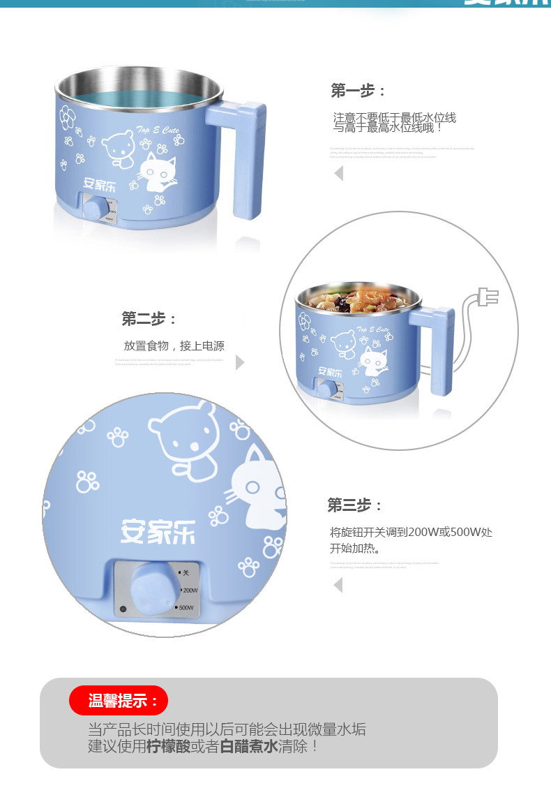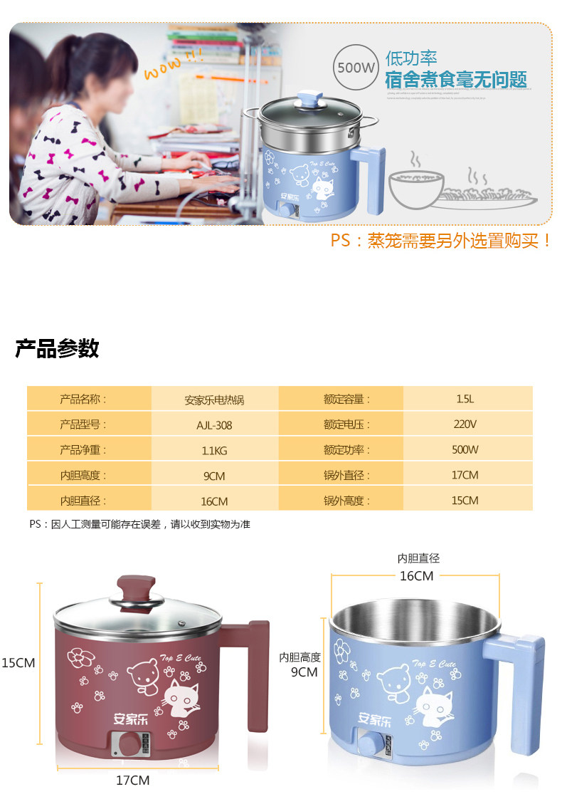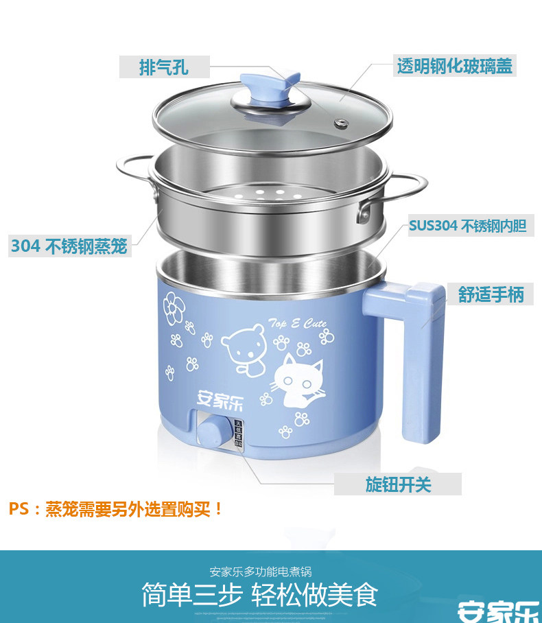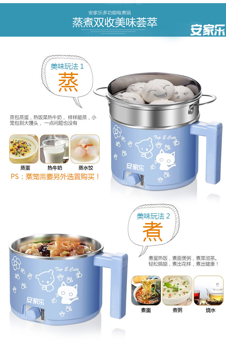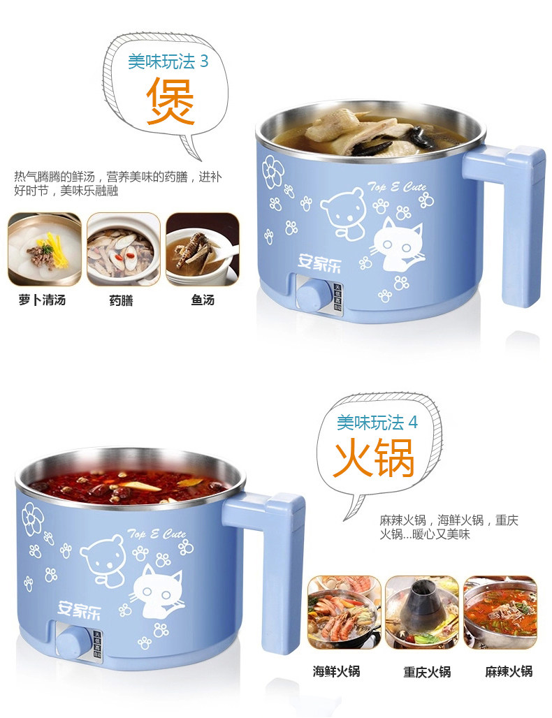 安家乐小电锅迷你电煮锅杯泡面锅煮面锅宿舍锅学生1人-2人小功率