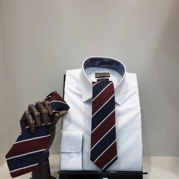 굵은 네이비 .와인 사선 패턴대검폭 7cm 슬림형
