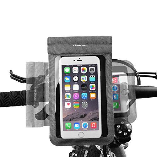 Waterproof Bike Mount Holder, Getron Universal Bicycle Mobile Phone Waterproof Pouch Holster Case For Cell Phone Up To 6 Inches Display, Supports iOS Android Windows Smartphone - Gray