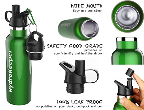 DOUBLE WALLED INSULATED WATER BOTTLE. 100% LEAK-PROOF The Hydrokeeper water bottle is made from food grade 18/8 stainless steel. It is highly durable and has a sleek and convenient design. It is double-walled vacuum insulated and sweat-free. 100% leak-proof water bottle - no any puddles on your desk or in your car or any other places.
