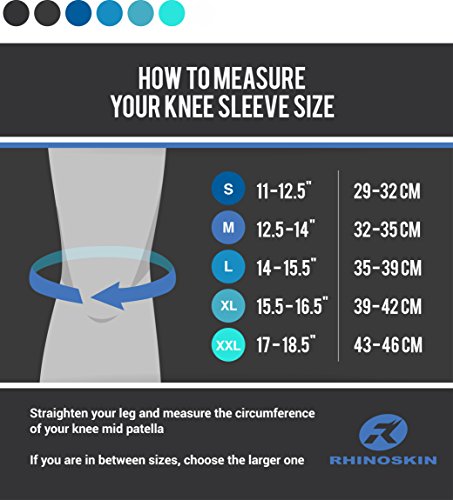 -. Feature : RELIEVES STUBBORN KNEE PAIN: Extra thick compression knee brace provides stability and muscular protection to prevent injury and strain in strenuous workouts and everyday activities alike. / VOTED BEST FITTING KNEE SLEEVE: Our angled and contoured fit knee sleeves are ergonomically and functionally designed specifically for Cross Fitness, Powerlifting, Weightlifting and other Fitness Training as well as recovery from knee injuries and surgery. Available in 5 sizes, they are guaranteed to stay in place through even the most vigorous activities. / ADVANCED NEOPRENE MATERIALS PERFORM BETTER & LAST LONGER: Absorbent, lightweight, stretchable, insulating, cushioning and latex-free, Neoprene offers the perfect balance of comfort and intensive support for long-term durability. / CHOOSE THE BEST SIZE FOR YOU: To get the right fit, measure the knee mid patella with the leg straight. If tight competition fit is desired, order one size smaller than the RhinoSkin recommended sizes. (see sizing chart in the photo area) / 1 YEAR HASSLE FREE WARRANTY: Our 1-pair of knee sleeves are engineered with the optimal balance of support and freedom of keeping you mobile. We stand by our knee stabilizing protector with a 1-year no-hassle free replacement guarantee.