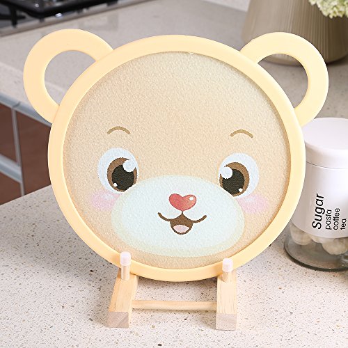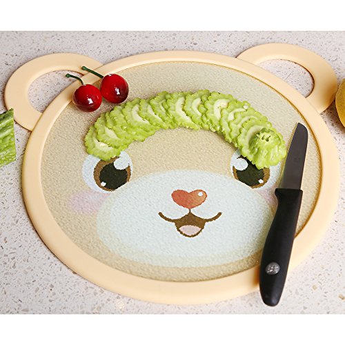 Multi-functional Tempered Glass Cutting Chopping Board Kitchen Surface Chef Board Diameter 10" 25cm Round Bear