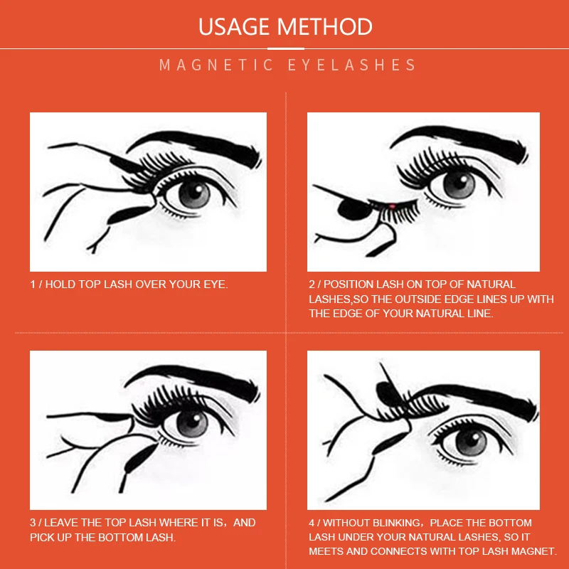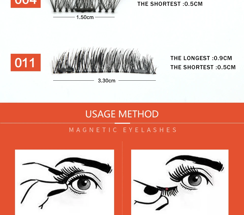 Size:1 pair= 4 pcs 3D Magnetic False Eyelashes
