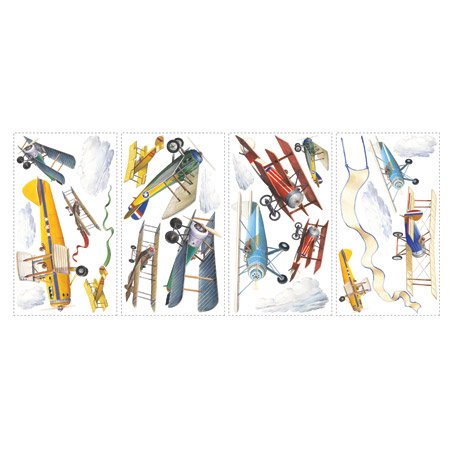 -. Title : York Wallcoverings RMK1197SCS RoomMates Vintage Planes Peel & Stick Wall Decals,