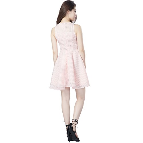 -. Title : (ネアドア)NEADOO レディーズ ワンピース ピンク 丸首 ノースリーブ 膝丈 ドレス 透かし クルーネック 着痩せ お出かけ デート 二次会 結婚式