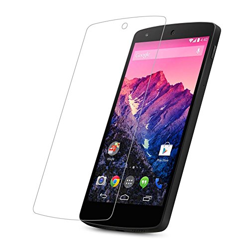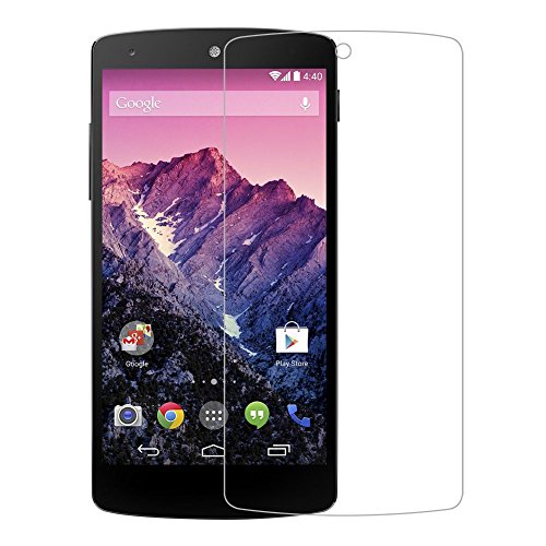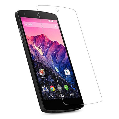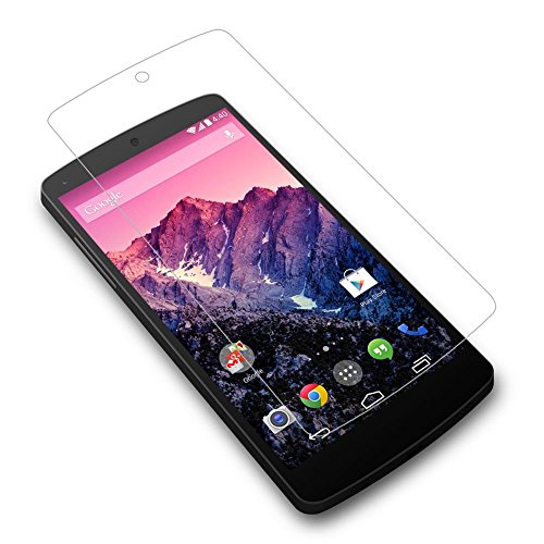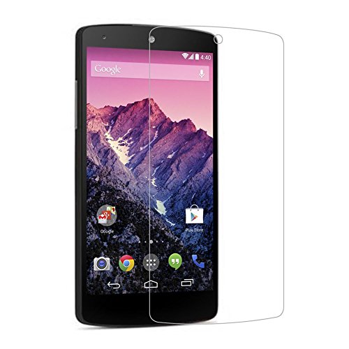 Feature : Thickness and Premium material for the tempered glass screen protector for Google Nexus 5. / Protect the Screen against dust,scratches and shocks by coating the glass shield on the screen. / High-definition clear hydrophobic and oleophobic screen coating protects against sweat and oil residue from fingerprints. / 2.5D round edge for better screen coverage. / Easy install and automatically adsorption for screen.