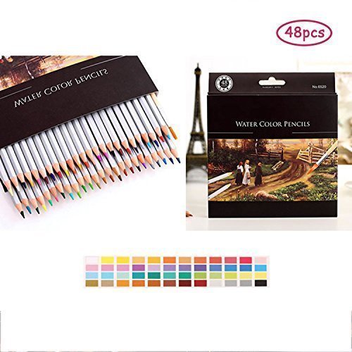 Water Soluble Color Wooden Pencils, izBuy 48-color Premier Soft Core Art Drawing Kit for Kids Artist Writing/ Field Sketch/ Manga Artwork/ Adult Secret Garden Coloring Book(Not Include) (48 Color)