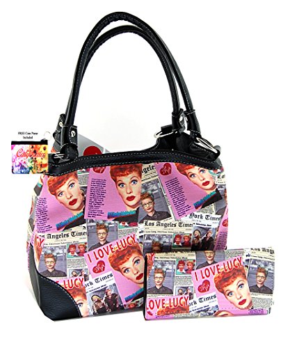 -. Feature : I love Lucy pink collage medium tote and wallet set / Plus CA coin purse / Faux leather, Top zip closure / Officially licensed / More details in the description