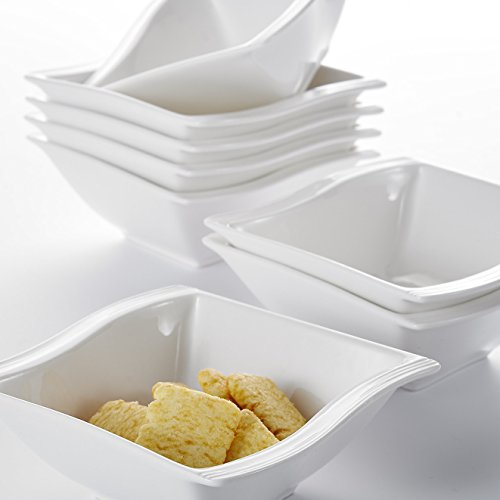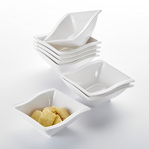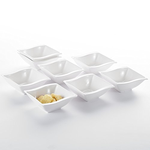Malacasa Series Favor, Two-layer Ceramic Porcelain Tealight Candle Cheese Butter Chocolate Fondue Set with 6 Dipping Bowls 6 Forks, Ivory White