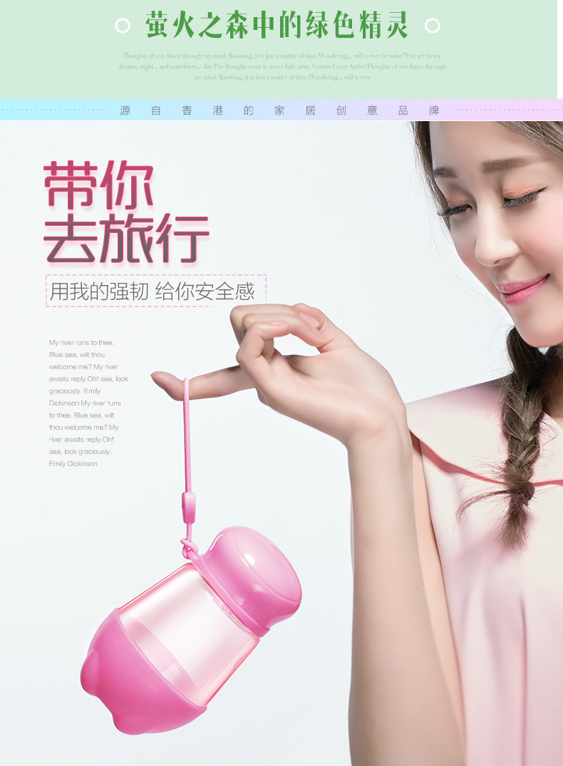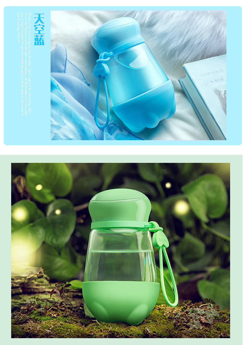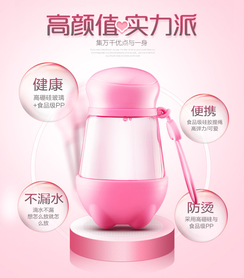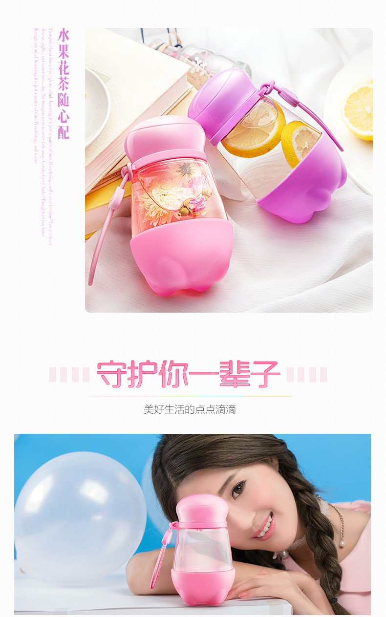 便携玻璃杯 创意可爱带盖夏天防漏水杯女透明花茶杯子