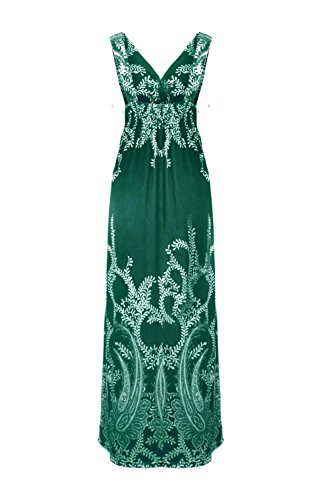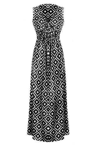 Sleeveless long smocked dress featuring a bohemian inspired bright bold printed pattern all throughout for the spring summer season. Surplice crossover v-neckline and a fitted smocked stretch construction accenuating the waistline. Ruched tie and smocked details at shoulders and a lengthy dress in a top quality medium weight jersey stretch knit for softness and comfort.Feature