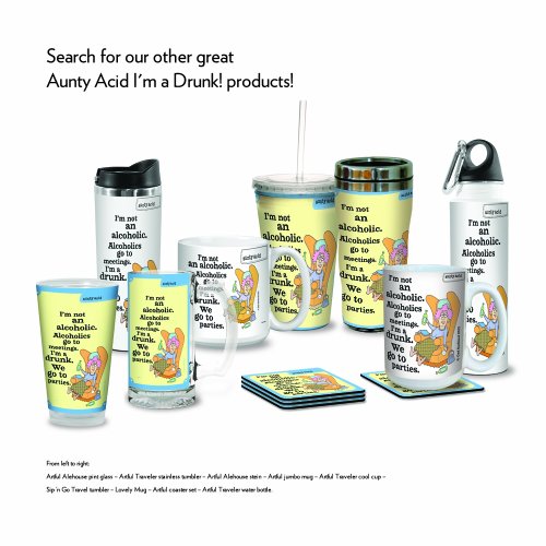 Studio : Tree Free Publisher : Tree Free Binding : Kitchen Product Description Tree-Free Greetings strives to use the most eco friendly materials and processes possible. Printed and assembled in the USA, The Tree-Free Greetings Artful Traveler Stainless Water Bottle is vibrantly printed with hard to find I'm a Drunk. themed art and is great for everyday use. This 18-8 stainless bottle is printed with VOC-free, solvent-free water-based dye and will stay vibrant for the life of the product. It's reusable, keeping those plastic water bottles out of the waste stream. BPA free and Proposition 65 compliant, this sleek 18 ounce bottle and carabineer fits easily into a backpack or cup holder. The Tree-Free Greetings Artful Traveler Stainless Water Bottle makes the perfect gift or souvenir. Save trees and spread joy. Buy a Tree-Free earth-friendly gift today. Aunty Acid - Wickedly Funny humor from Backland Studio. Search for more great humor on more great items on Amazon. 0
