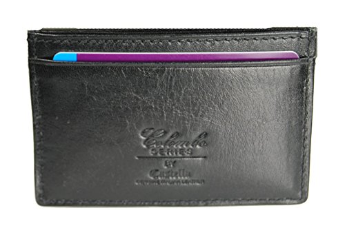 -. Binding : Apparel -. Brand : Castello -. Color : Black -. Department : mens -. Feature : Italian Soft Cowhide Leather / Top entry cards and cash / 2 credit card slots for multiple cards and folded cash, ID window / Handsome Castello gift box included / Size: 4 inches wide x 2.6 inches tall -. Model : 582-025-1 -. ProductGroup : Apparel -. ProductTypeName : ACCESSORY -. Size : One Size -. Title : Castello Italian Super Slim Front Pocket Wallet