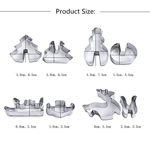 Meao 8 Pieces Christmas Cookie Cutters Set - Stainless Steel Metal Baking Molds - Including Christmas tree, snowman, reindeer and Sled