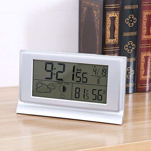 Hygrometer Thermometer, ROSKY Digital Hygrometer Thermometer Indoor Humidity Monitor with Large LCD Display and Alarm Clock for Temperature Gauge, Humidity Meter and Clock(silver)