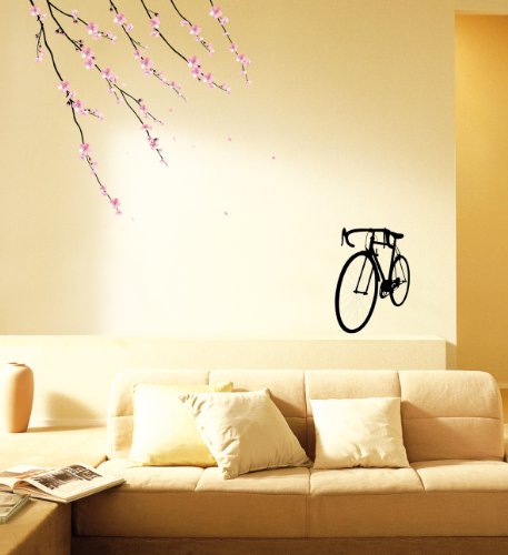 -. Title : HYUNDAE Sheet Easy Instant Home Decor Wall Sticker Decal - Perfect Sakura Blossoms Pink Bicycle